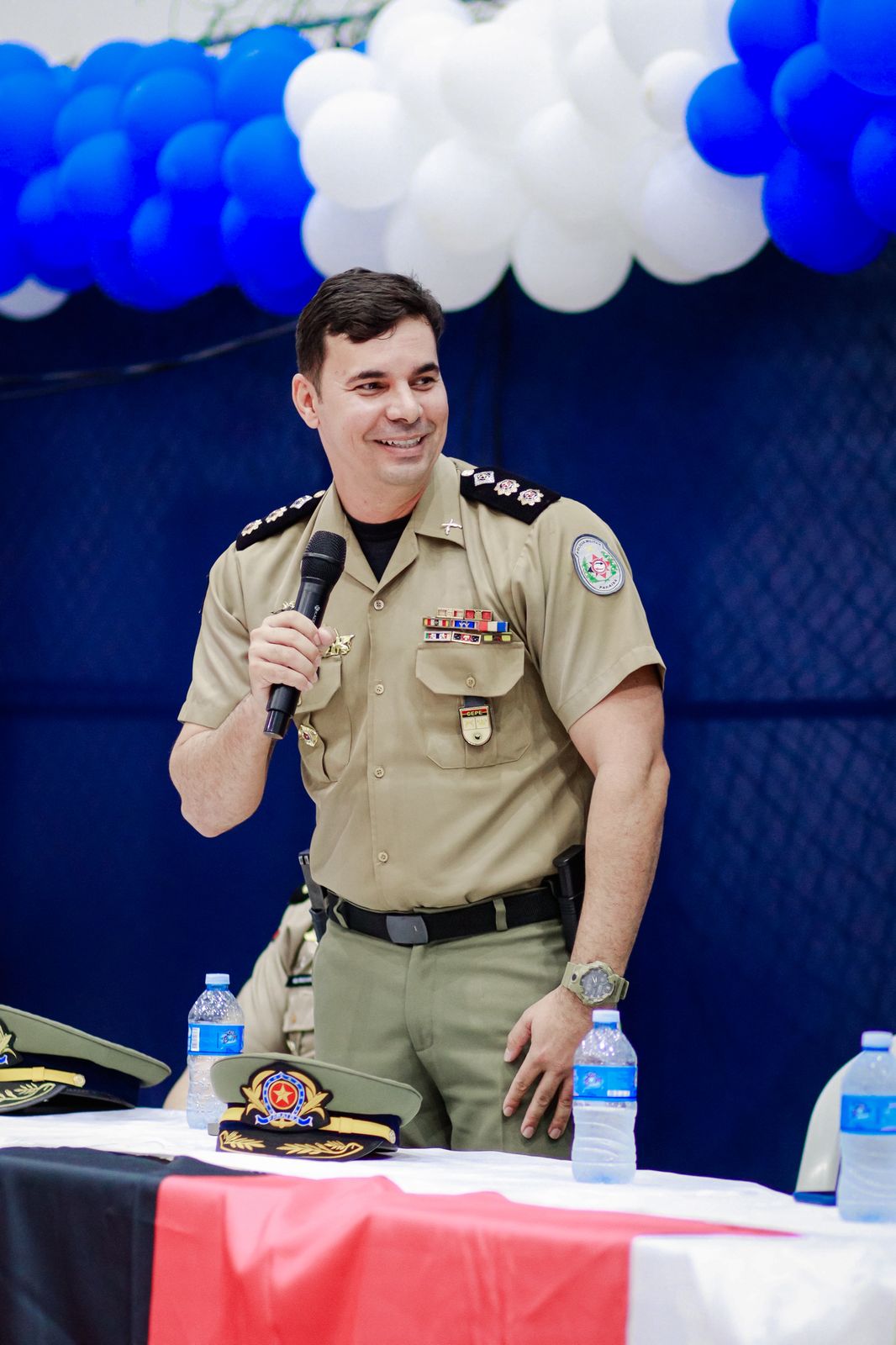 A formação técnica do oficial também abrange áreas especializadas e de alta complexidade, como mergulho policial, paraquedismo policial e o Curso Tático de Ações Motociclísticas (CTAM), realizado no BPChoque da PMDF. Essa diversidade de experiências reforça sua capacidade de liderança em cenários distintos, desde operações táticas até a gestão educacional.