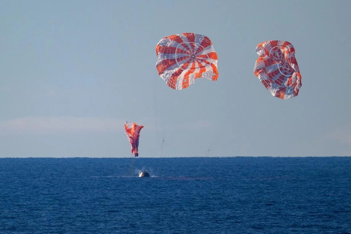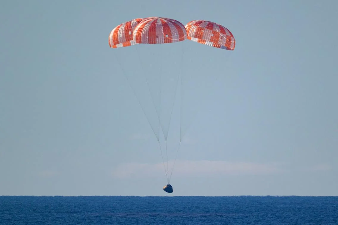 A reentrada na atmosfera foi o momento de maior tensão. A Orion enfrentou velocidades superiores a 38 mil km/h e temperaturas que ultrapassaram 2.700°C, fruto do intenso atrito com o ar. Mesmo sob condições extremas, o sistema de proteção térmica cumpriu seu papel, e os grandes para-quedas garantiram um pouso suave nas águas calmas do Pacífico.