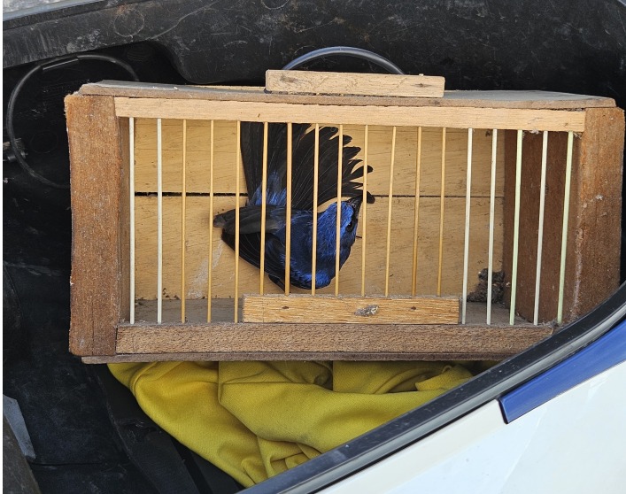 Já no município de Alhandra, litoral sul paraibano, no km 107, por volta das 15h31, uma equipe da PRF abordou uma motocicleta Honda Biz 125, de cor branca. O condutor, um homem de 23 anos, tentou desviar da fiscalização, mas foi parado. Durante a abordagem, os policiais constataram que ele não possuía CNH e que o licenciamento do veículo estava vencido. Ao notar uma gaiola vazia na moto e questionar o condutor, foi encontrado um pássaro conhecido como “Azulão” (Cyanocompsa brissonii), sem anilha, escondido em uma caixa pequena, enrolado em uma camisa, no “porta-treco” sob o assento, sem ventilação e iluminação.