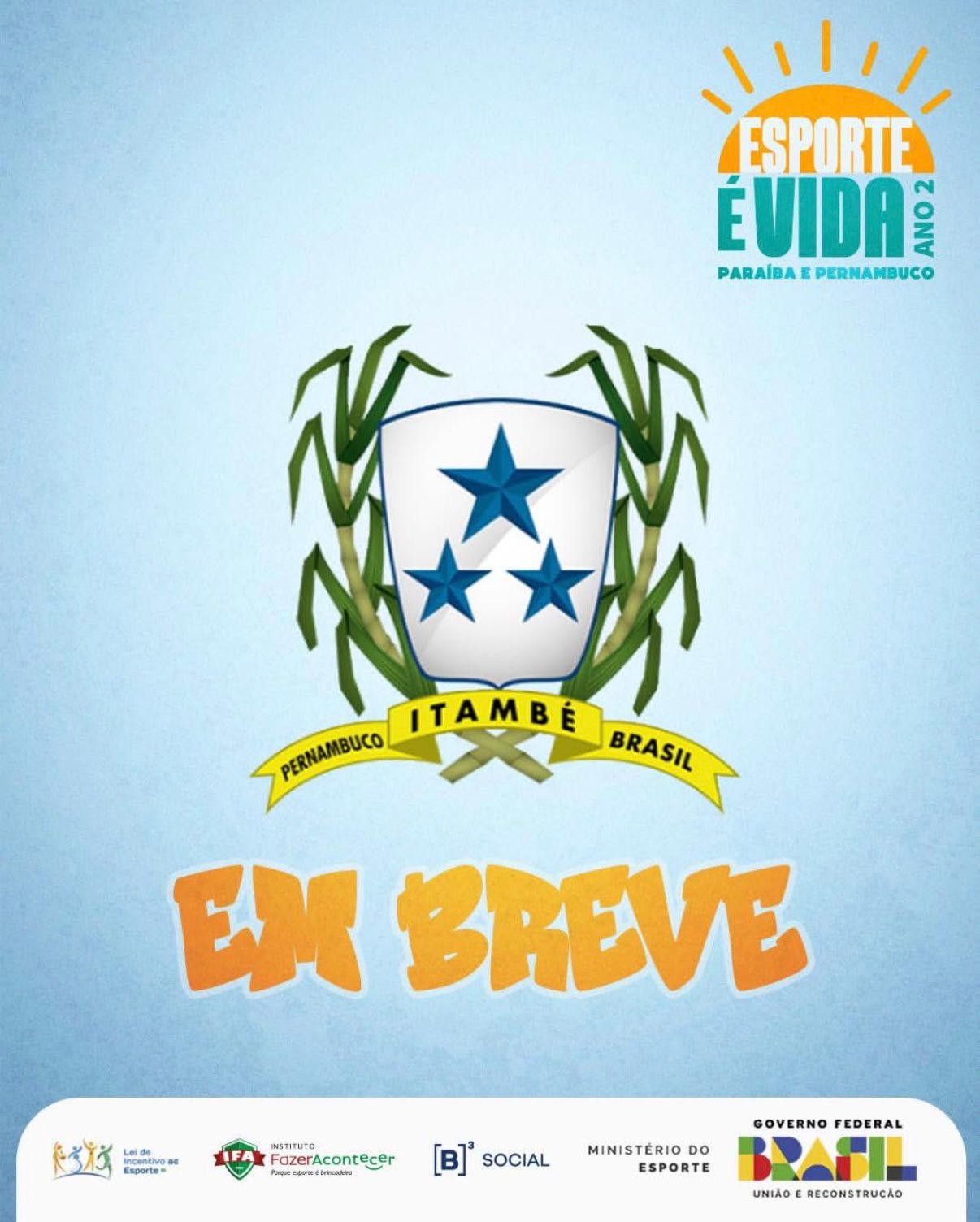 Itambé será uma das cidades beneficiadas pelo projeto Esporte é Vida 2, uma iniciativa do Instituto Fazer Acontecer que conta com o financiamento da B3 – Bolsa de Valores do Brasil. O programa tem como objetivo principal promover o desenvolvimento integral de crianças e adolescentes, utilizando o esporte como ferramenta para a formação de valores sociais, a prática da cidadania e a inclusão social. Além disso, busca fortalecer políticas públicas voltadas à juventude, contribuindo para um impacto positivo na comunidade local.