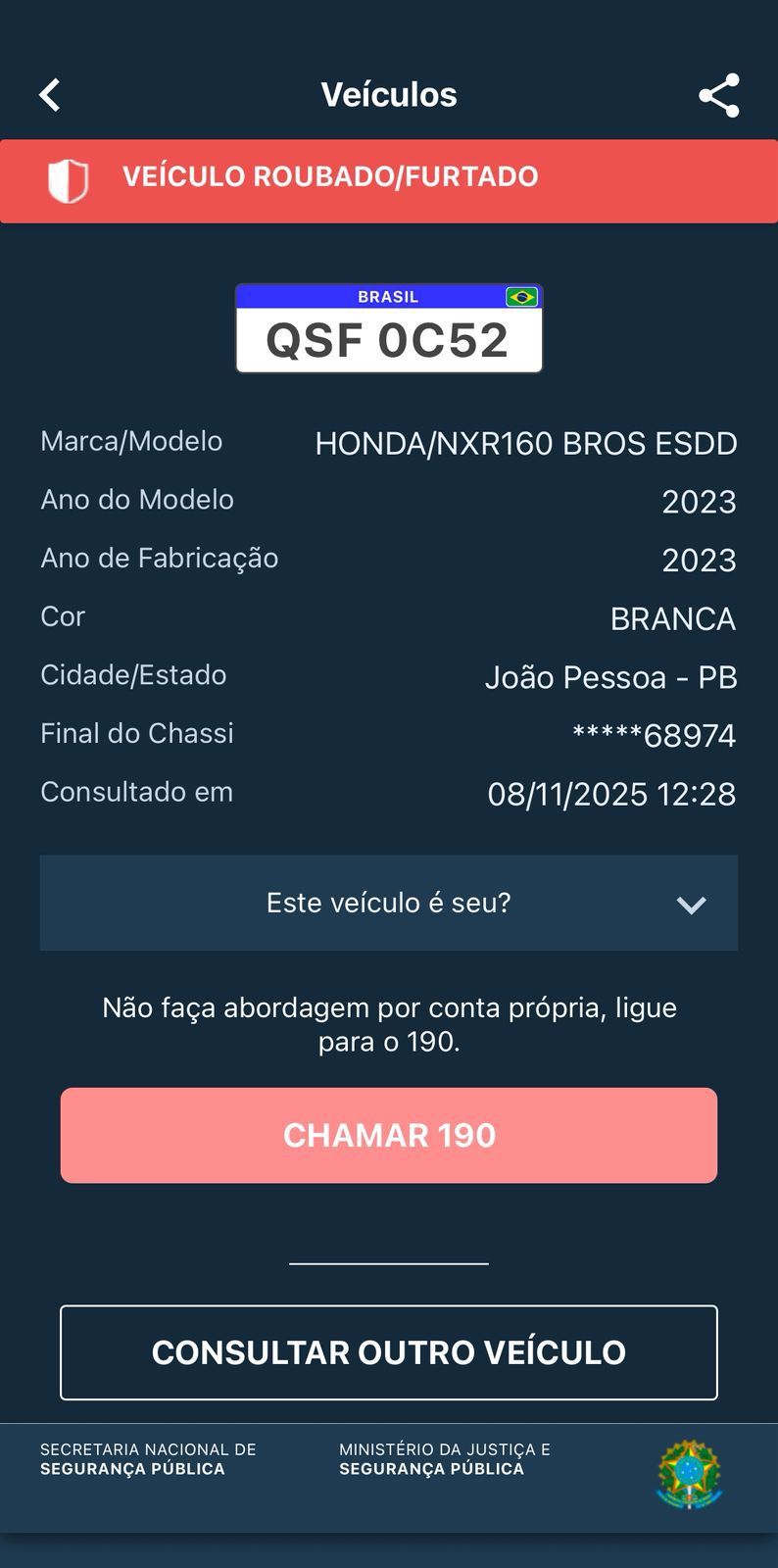 De acordo com a Polícia Militar a Moto Honda CG 160 Titan, Cor Laranja, ano 2025, placa de Pitimbu, a mesma foi roubada em Goiana, a guarnição foi acionada e conseguiram interceptar os criminosos.