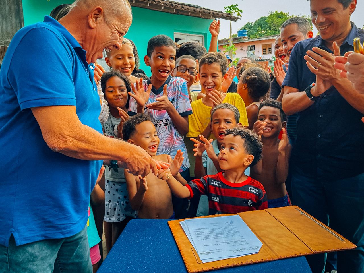 O momento foi marcado por comemoração entre os moradores, que celebraram o anúncio das obras e o novo nome da rua, especialmente as crianças, que vibraram com a novidade.